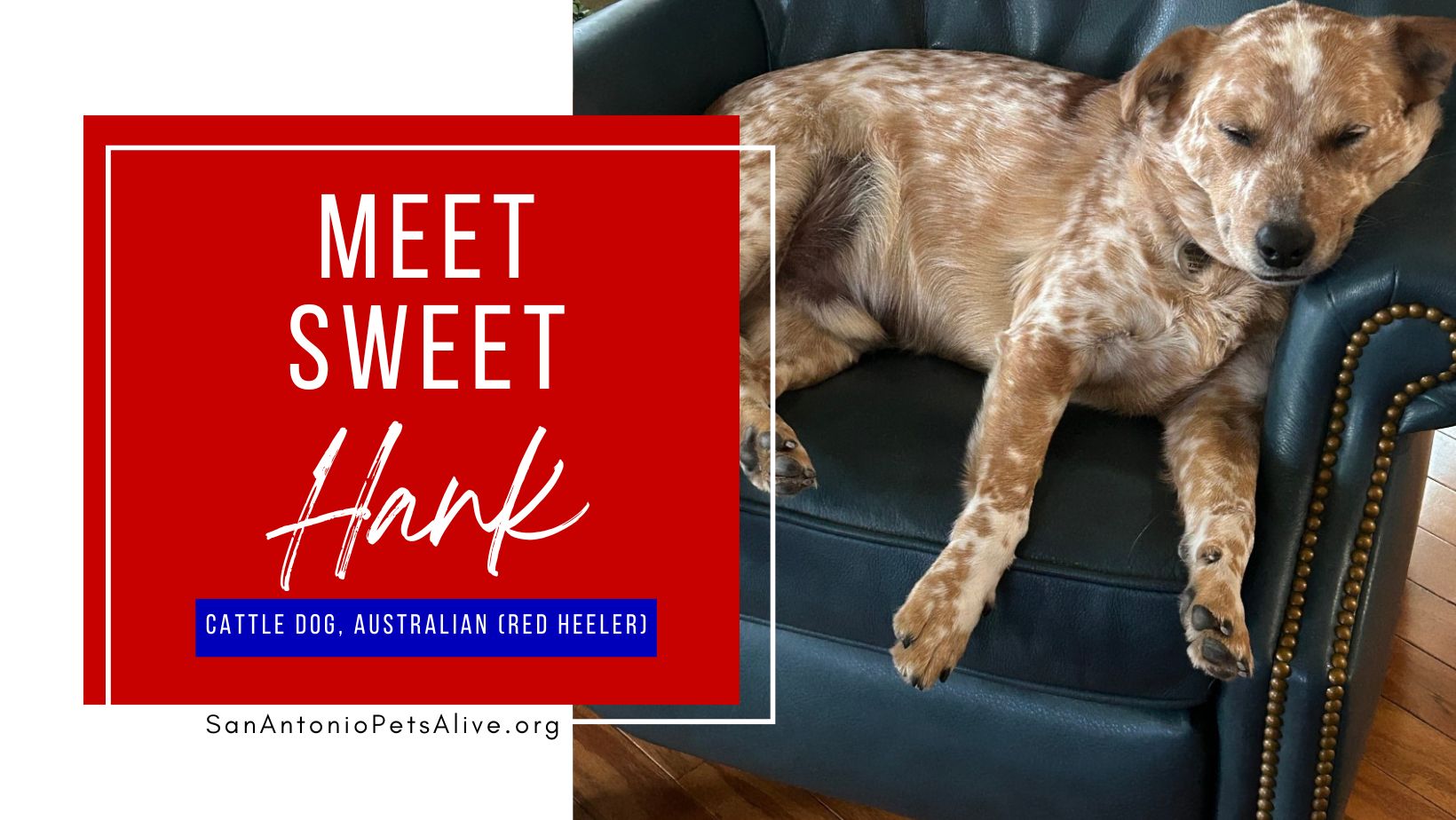 Hank is 1 and 1/2 years old Red Heeler who has beautiful red and white fur with blond eyelashes. He is athletic, active and friendly to everyone.
